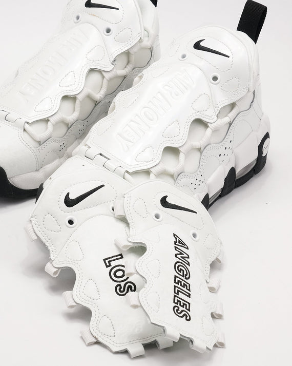 These Women's Air More Money LX Quickstrike is a special model available only in Black and White, produced exclusively for the 2018 NBA All-Star Game in Los Angeles, celebrating team LeBron (White) and team Stephen (Black). Consisting of a hybrid design of two basketball shoes that were born in the 90s using the 'Air More Uptempo' sole with the "Air Money" upper.