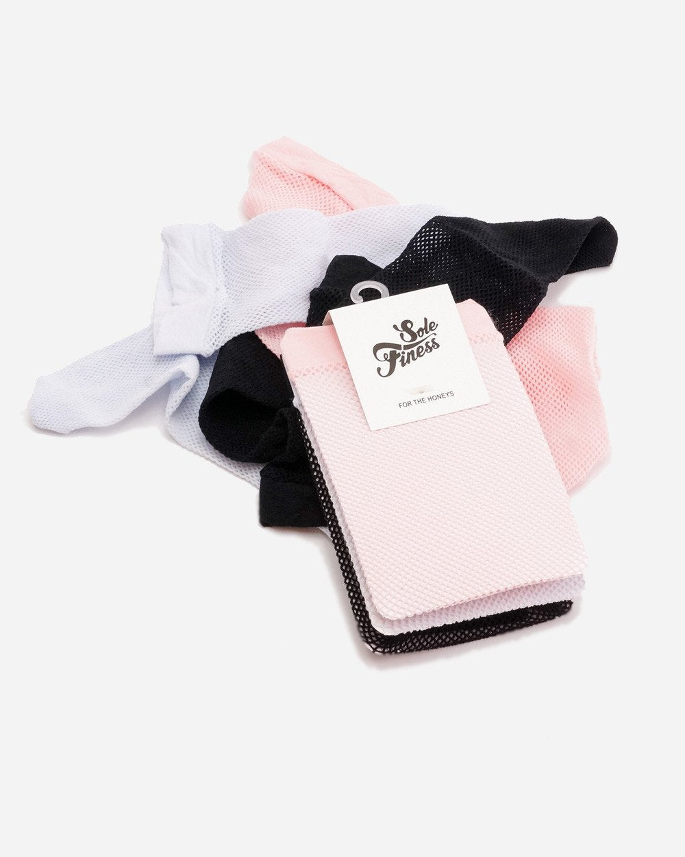 Available in a three pack featuring Finess Pink, Blue Grey and Black, made with the softest blend of Polyamide and Spandex, these socks will be the ultimate accessory to compliment any sneaker. Add these to cart along with your order now!