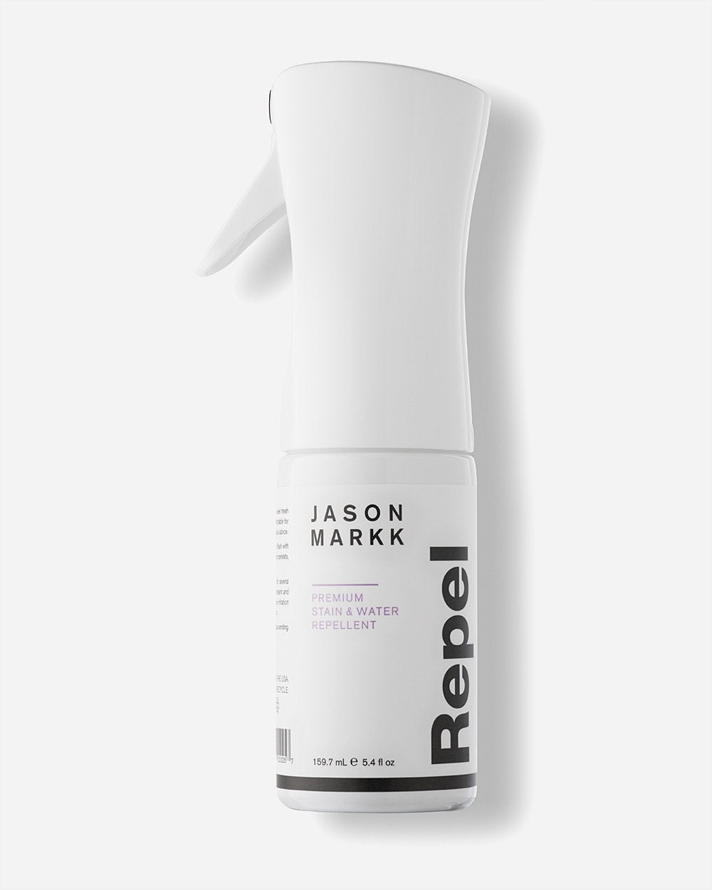 Jason Markk Repel creates a durable, breathable barrier that effectively repels liquids and stains. It’s water-based formula is safe to use on all materials like suede, nubuck, leather, nylon, canvas and more. A redesigned “better-than-aerosol” spray quality, engineered with multi-patented technologies, creates a fine mist combined with a continuous spray functionality covering large areas quickly and evenly in all directions. With the smart, re-usable head and convenient refill features added in, Repel is much more environmentally friendly than hazardous aerosols.